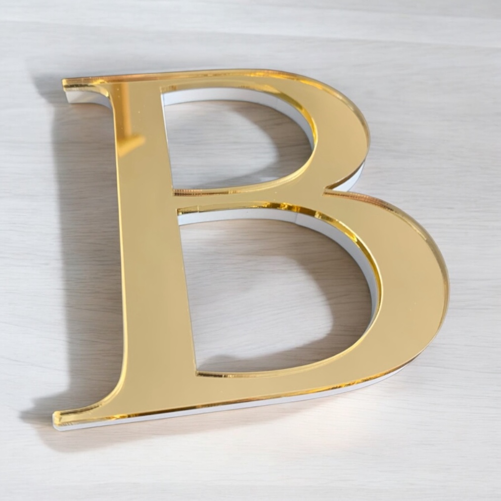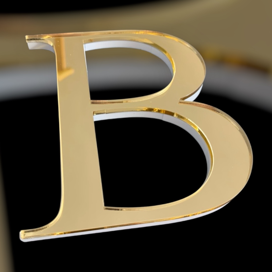 Edelste Buchstaben für Logos und Schriftzüge mit Goldspiegel und weißem Acryl, 8 mm Stärke